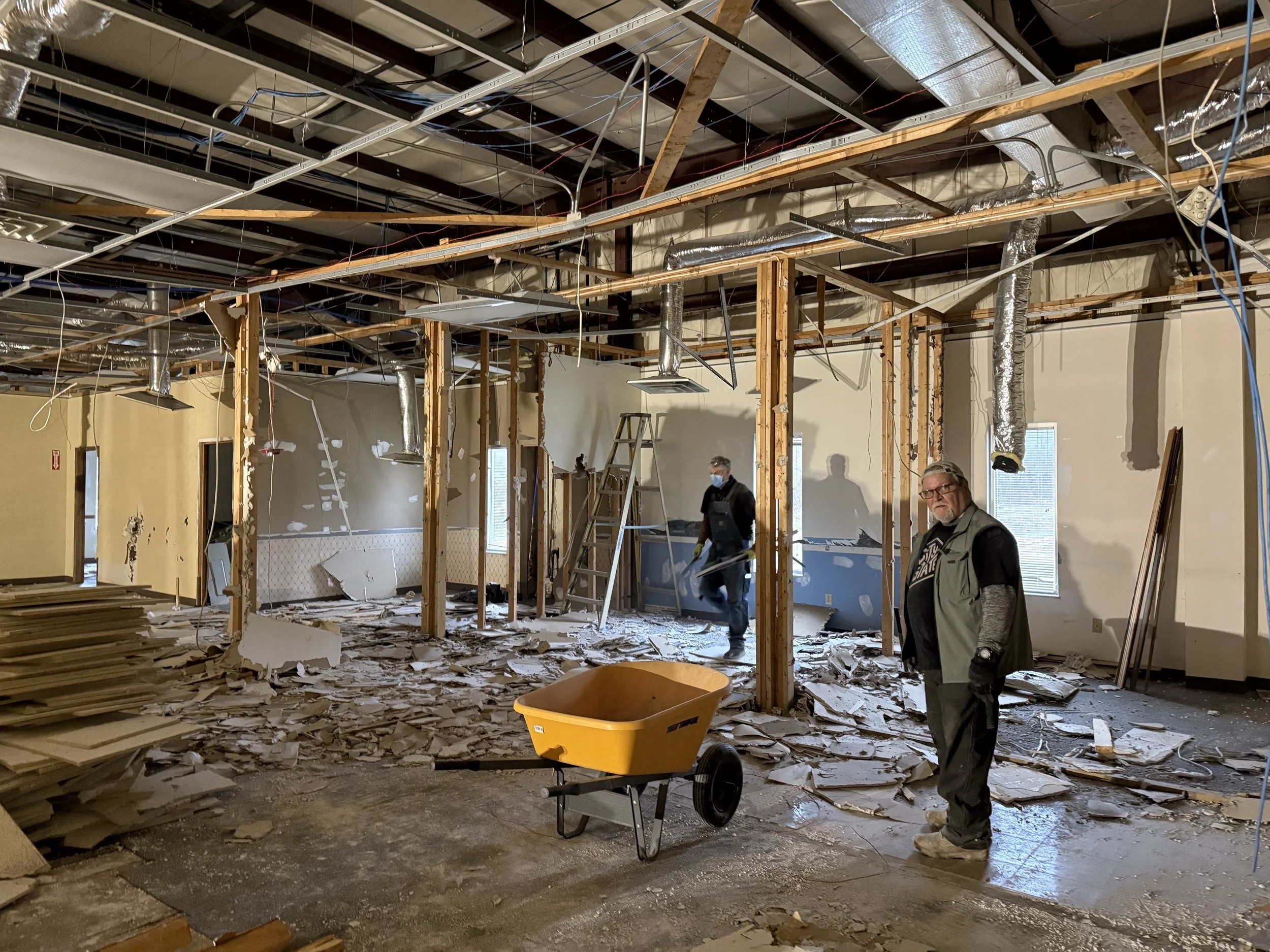 Over the past several months, our dedicated volunteers and contractors have successfully completed the demolition of the existing office spaces to create an open area for our sanctuary and front entrance. With this phase now finished, we are preparing to commence the construction and rebuilding process in the near future. We remain grateful for God’s continued guidance and for the support of our congregation as we advance toward completing a space fully suited for worship, fellowship, and community ministry. Further updates will be shared as progress continues.
